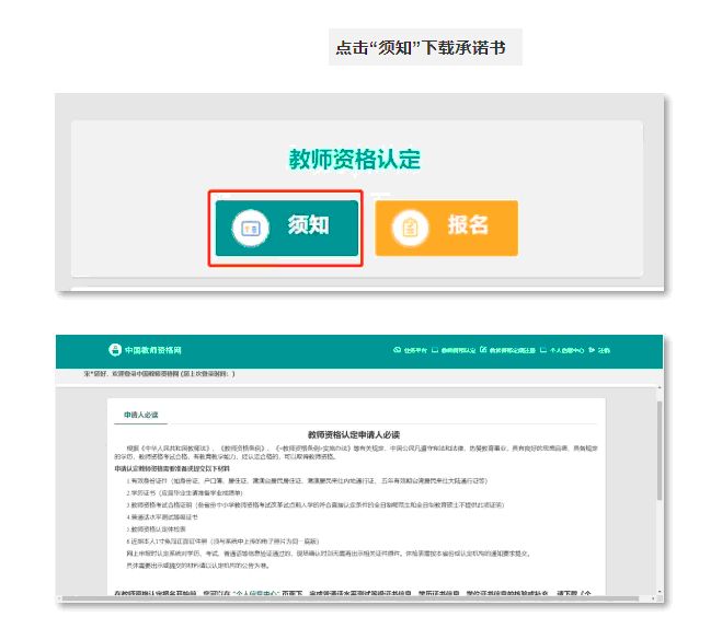 4 点击“须知”下载承诺书