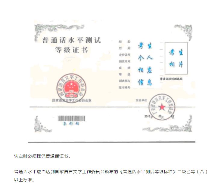 温馨提示: 一、申请人学历、学籍信息核验结果是以全国高等学校学生信息咨询与就业指导中心(学信网)信息管理系统查询结果作为参考依据,其中无法核验的情况如下: 1.申请人身份信息发生变更,但学历、学籍信息库未更新。 2.学历、学籍信息库中没有申请人信息。 3.学历、学籍信息库更新滞后。 4.中等职业学校毕业生学历、学籍信息。 二、申请人普通话水平测试等级证书信息核验结果是以国家普通话水平测试信息管理系统查询结果作为参考依据,其中无法核验的情况如下: 1.申请人身份信息发生变更,但普通话信息库未更新。 2.普通话信息库中没有申请人信息。 3.普通话信息库更新滞后。 凡核验不成功的申请人,请在网上报名时,根据要求上传有关证件的电子扫描件,并在现场确认环节出示有关证件的原件。 5 选择认定机构